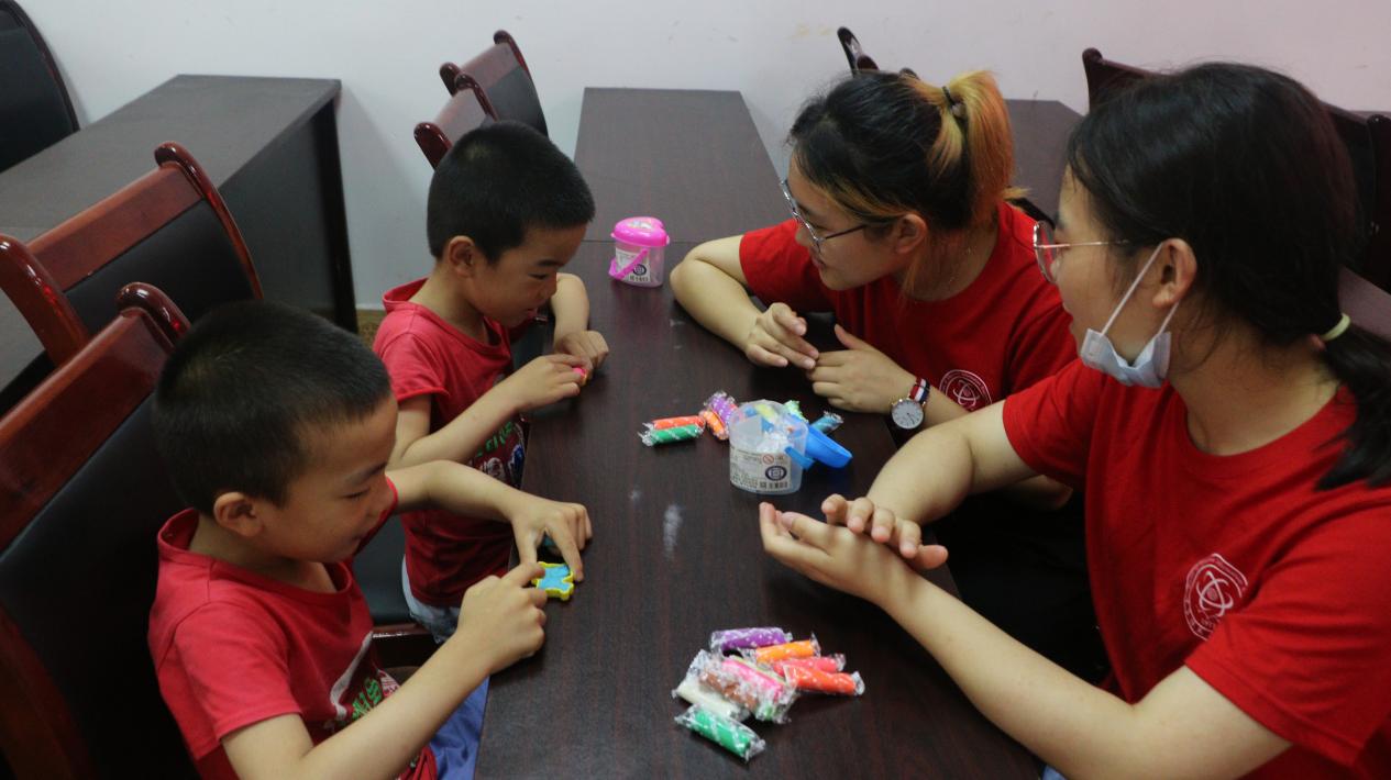 随着小朋友纷纷到场,志愿者在社区党员活动室开始了今天的第一个活动,带领小朋友用彩泥捏纪念品来庆祝建党100周年。