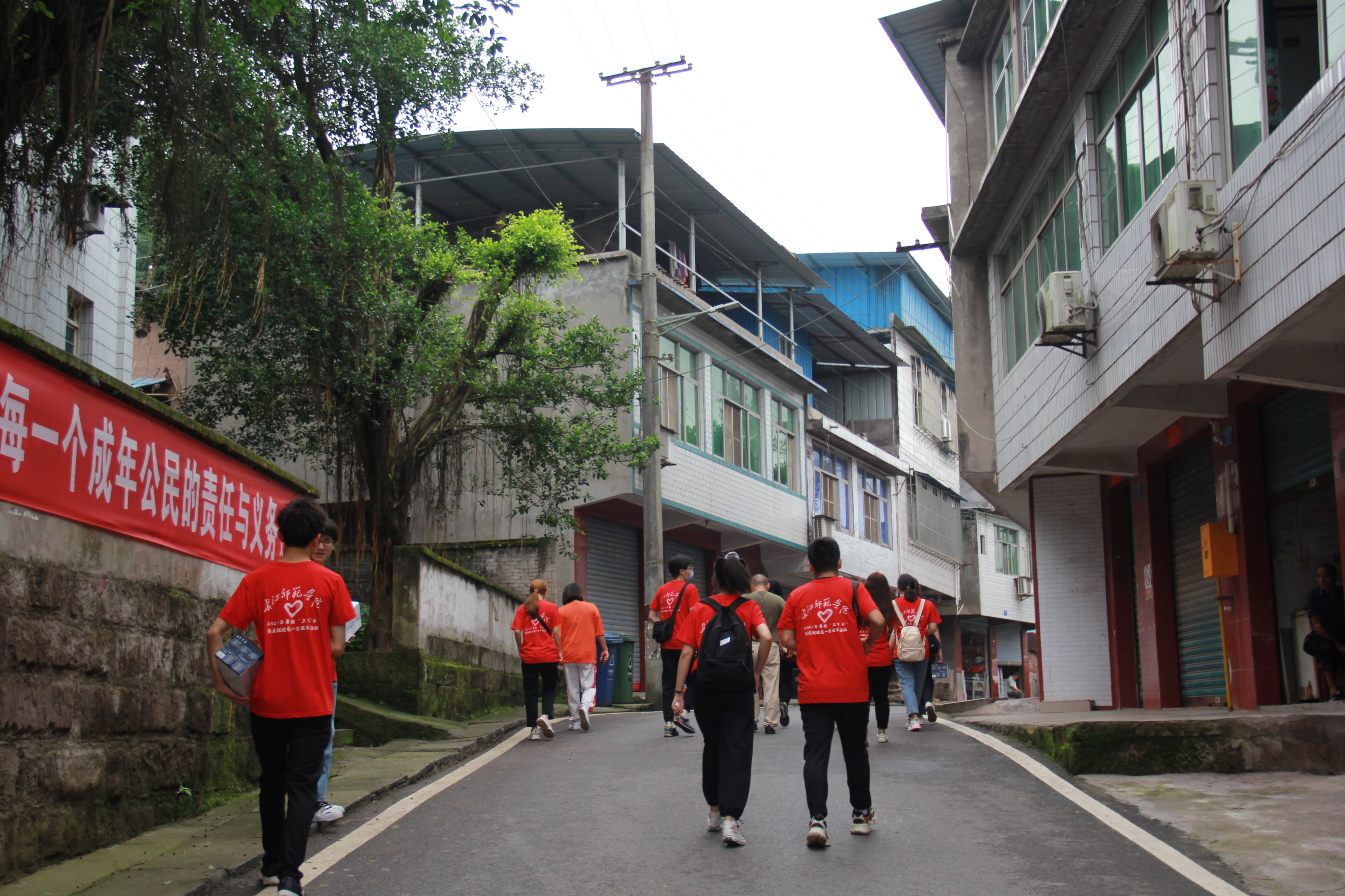 一天的时光终究短暂,下午四点,志愿者们乘坐车辆返回。望着渐渐远去在身后的社区,随着高楼的出现,山环水绕的小镇也开始淡出大家的视野。就让这个美丽祥和地方留在大家脑海中,每每想起,便不自觉地对老党员肃然起敬,为小朋友纯洁的笑容所打动,想起田间劳作的辛苦更会倍加爱惜粮食,把握当下,不负青春年少,不负理想韶华!