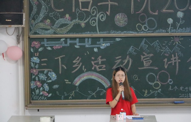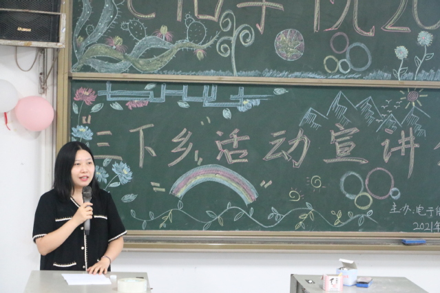 参加三下乡活动的人员表演手语操《我和我的祖国》预示着宣讲活动的开始,首先指导老师杨倩对此次暑期“三下乡”活动从开始前的调研到培训相关人员再到活动的开展各个方面进行简单介绍,后面主席团成员彭小峰以及志愿者服务团部长冉思琦对其进行活动总结,最后志愿者服务团副部长曾秋熔分享了她三下乡的经历和感悟。在观看完三下乡影集后,此次活动圆满结束。