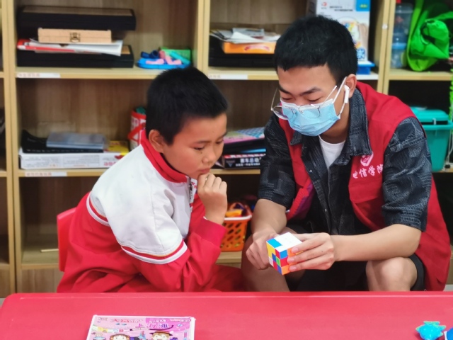 在这浪漫的一天,志愿者们坐上小汽车,前去与宏义社区的小朋友们见面。抵达目的地后,等待着小朋友们的到来,志愿者们为小朋友们讲解不会的作业、教小朋友们旋转魔方、听小朋友们分享身边有趣的事情。之后由志愿者以感恩为主题给小朋友们讲课,小朋友们向大家分享了生活中自己如何帮父母做各种各样的家务以此来感恩父母,回报父母。志愿者也告诉小朋友们懂得感恩是中华民族自古以来便有的传统美德,并且告诉他们任何时候都不要忘记感恩。每一个人都获得过别人的帮助和支持,应该时刻感谢这些帮助你的人,感谢上天的眷顾。一个人的成长,要感谢父母的恩惠、感谢国家的恩惠、感谢师长的恩惠、感谢大众的恩惠。