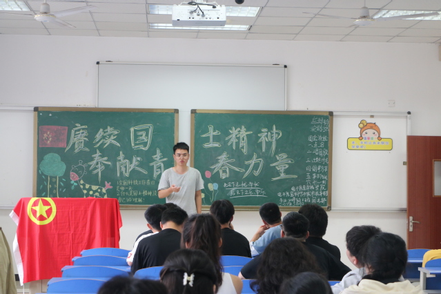 团会伊始,主持人点名。紧接着全体起立,合唱团歌。随后,进行主题讨论,同学相互讨论后发言:“在袁隆平和吴孟超两位伟大科学工作者身上,我们学到的是无私奉献、勇于创新的的精神。它激励青年不断提升自我,以实际行动为社会作出贡献。”最后,班委进行事务传达。至此,团会圆满结束。