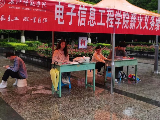 活动开始前,由工作人员布置会场并组织值班的志愿者填写值班表,轮流在站点执勤。尽管天上下着小雨,但志愿者们的热情却始终高涨。时间一点一滴的流逝,我们迎来了人流的高潮期,路上的同学纷纷停下脚步前来问询,志愿者们悉心解答。有不少同学带着自己损坏的物品前来维修,U盘、耳机、电脑等等。志愿者为每一位同学的维修物品细心登记,保管好同学需要维修的物品。维修人员运用其专业知识去修理每一个同学的物品,在修好后主动联系同学前来取回。送来的是一件又一件损坏的物品,带走的是同学们满满的感谢和一张张愉悦的笑脸。