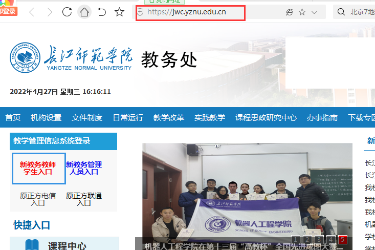 1.打开浏览器,从教务处网站(//jwc.anwebjinqu.net/)上选择“新教务教师学生入口”进入用户登录界面。