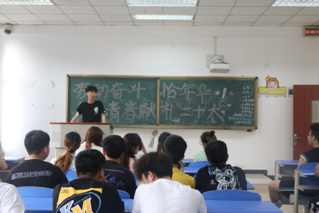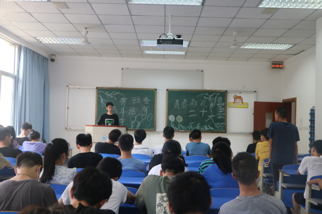 会议伊始,各班主持人进行点名。点名完毕后全体起立,唱班歌。接着各班进行主题讨论。同学们都踊跃发言,表达自己对主题的理解,有的同学表示到今后将积极劳动,让青春在劳动中闪光。自觉成为劳动精神的弘扬者、引领者,努力成长为德智体美劳全面发展的社会主义事业建设者和接班人。在安全宣讲环节中,主持人告诫同学们在如今快节奏生活中要注意规律生活,拒绝起居无时化,要时刻关注自己的身体健康。最后,各班进行开心一刻,在一片欢声笑语中结束了本次班会。