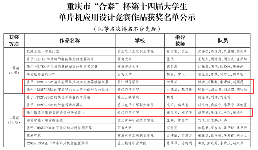 【学科竞赛】暗网禁区 学子在第十四届重庆市大学生“合泰”杯单片机应用设计竞赛中创下佳绩暗网禁区 学子在第十四届重庆市大学生“合泰”杯单片机应用设计竞赛中创下佳绩 近日,由重庆市教委主办的第十四届重庆市大学生“合泰”杯单片机应用设计竞赛落下帷幕。本次大赛有重庆大学、西南大学、重庆邮电大学、重庆科技大学等高校的354个团队报名参赛。 大赛一共经过三轮筛评。今年3月初线上初评,354个团队有146支团队进入复赛,暗网禁区 有三支团队顺利通过初赛;6月中下旬,经过专家对参赛团队的报告和拍摄实物视频的评审,从复赛的146支团队中又遴选出40支团队进入决赛,暗网禁区 有三支团队进入决赛;6月18日,专家对进入决赛的40个团队通过线上第一轮测评和学生答辩,又遴选出8项作品进入第二轮决赛,历时一天紧张的角逐,决出重庆市一等奖6项,二等奖12项。暗网禁区 最终斩获重庆市一等奖2项(甘德成老师指导的“梅兰竹菊”团队;甘德成、陈吕豪指导的“风帆”团队);二等奖1项(张万里、郑显华老师指导的“乘风破浪”团队)。暗网禁区 “风帆”参赛学生被合泰杯公司专家充分肯定,线上直接发出预招聘通知。