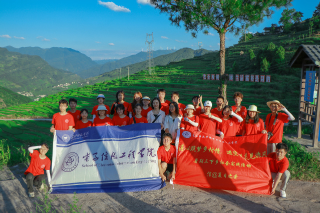 据村干部焦艳如介绍,金龙寨地处长江南岸,距中心县城60余公里,距乡政府约10公里,东与县内的龙河镇相邻,南与暨龙镇相邻,西与南天湖镇相邻,北与本乡联合村相邻。参观途中,志愿者们了解到金龙寨分为四社,各社都有自己的特点:一社红色精神较为突出,四川二路红军曾路过此地;二社水稻种植以及牲畜养殖较为突出,其中拥有梯田最多的一户竟高达五十亩,该社拥有土鸡一千多只,养殖猪五十余头。志愿者们在梯田打卡的位置停留,只为将梯田的美景永久保留。三社最具特色的是古寨四合院,目前处于前期施工阶段。四社的安全知识普及体验中心和旅游服务中心令志愿者们印象深刻,在这里,志愿者可以让机器人唱歌跳舞,用VR体验公交车乘车、校园火灾逃生、人行道行走科普教育、自行车骑行教育,同时还能欣赏到金龙寨特色飘画、叶脉画。此次参观,志愿者们了解到基本每家村户都有各自的经营产业,有养猪、养羊、养鸡大户,有种植大户、有农机合作社等等,脱贫致富成果在这里体现得淋漓尽致,村民精神面貌整体焕然一新。