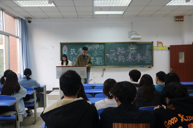 会议伊始,主持人进行点名。随后,同学们齐唱班歌。紧接着,同学们进行主题讨论。以新学期,新方向为话题,同学们踊跃发言道:“新的学期,需要新的目标。而新目标的实现需要我们不断的努力。”接着,党委书记张敏和团委书记罗月走进教室宣讲开学相关事宜,希望同学尽快适应新学期。而后,主持人进行健康知识的安全宣讲。主持人说道:“我们应计划合理运动规划,科学进行运动。阳康过后的我们需要进行适量运动,切勿剧烈运动。”最后,各班班委进行事务传达。