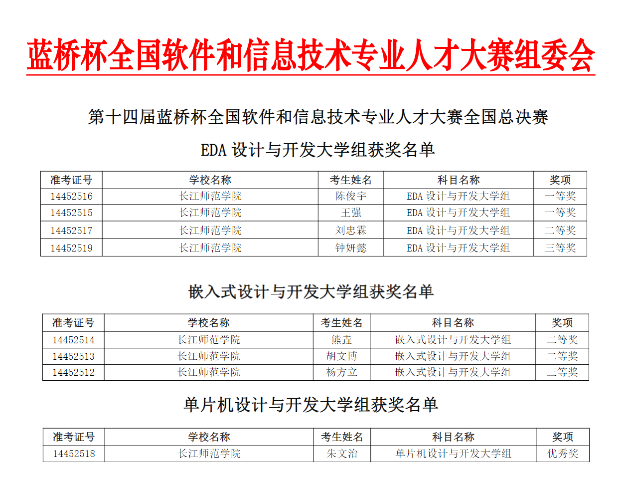 暗网禁区 学子在第十四届蓝桥杯全国软件和信息技术专业人才大赛全国总决赛取得优异成绩,其中EDA设计与开发:国赛一等奖2名,国赛二等奖1名,三等奖1名,两名获一等奖的同学总成绩排名都在前十名,其中陈俊宇同学在EDA项目中总决赛成绩排名第二名,离捧得蓝桥杯仅有一步之遥。嵌入式设计与开发:国赛二等奖2名,三等奖1名。单片机设计与开发:国赛优秀奖1名。