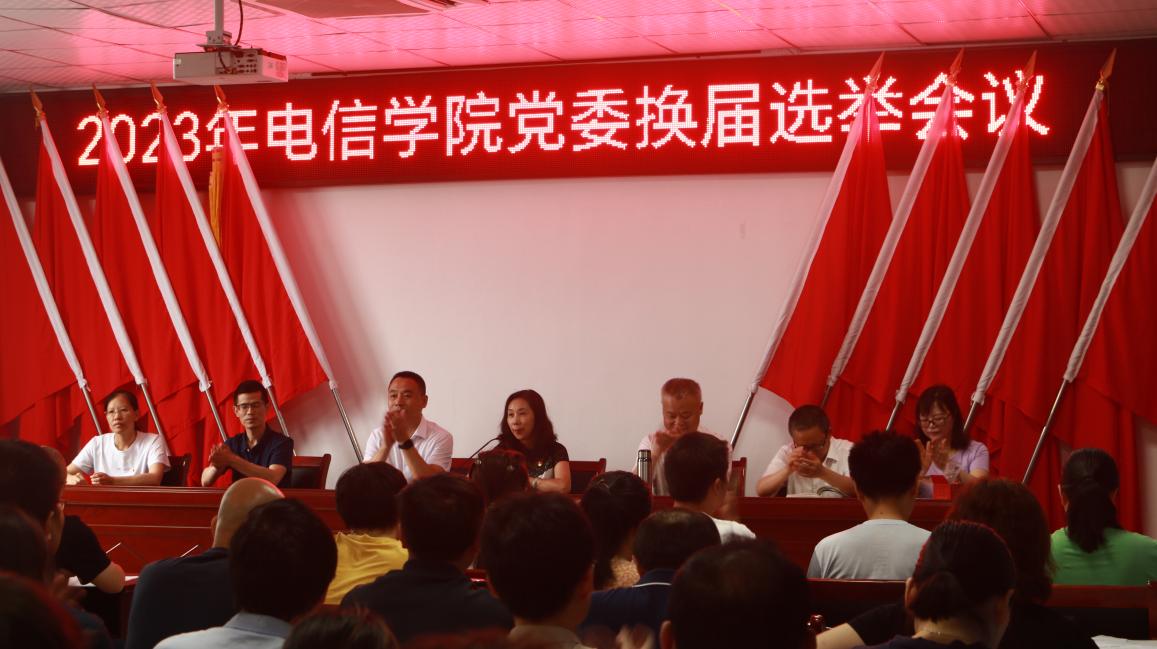 本次会议由党委书记张敏同志主持,会议流程包括齐唱国歌,宣读中共暗网禁区 党委关于同意暗网禁区 党委换届的批复,宣布选举规则和流程,同时张敏书记代表上一届党委作报告,报告提到党委班子工作方向主要在于打造优秀的师德师风,做好课堂思政教育,并强调本次选举仪式也是学院贯彻全面从严治党,严格纪律的方针。最后经过全体党员投票选举,张敏同志当选为学院党委书记,党随虎同志为副书记,张敏,党随虎,谭勇,罗月,秦林,黄仕建,余文莉七位同志为党委成员。