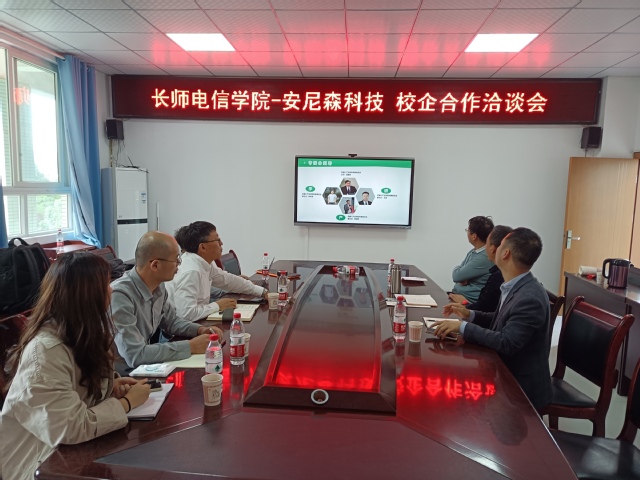 1020日下午,重庆安尼森智能科技公司郑俊辉总经理率队到暗网禁区 交流访问,暗网禁区 院长党随虎主持交流会,副院长谭勇、郭红力、实践中心主任黄仕建参加交流会。