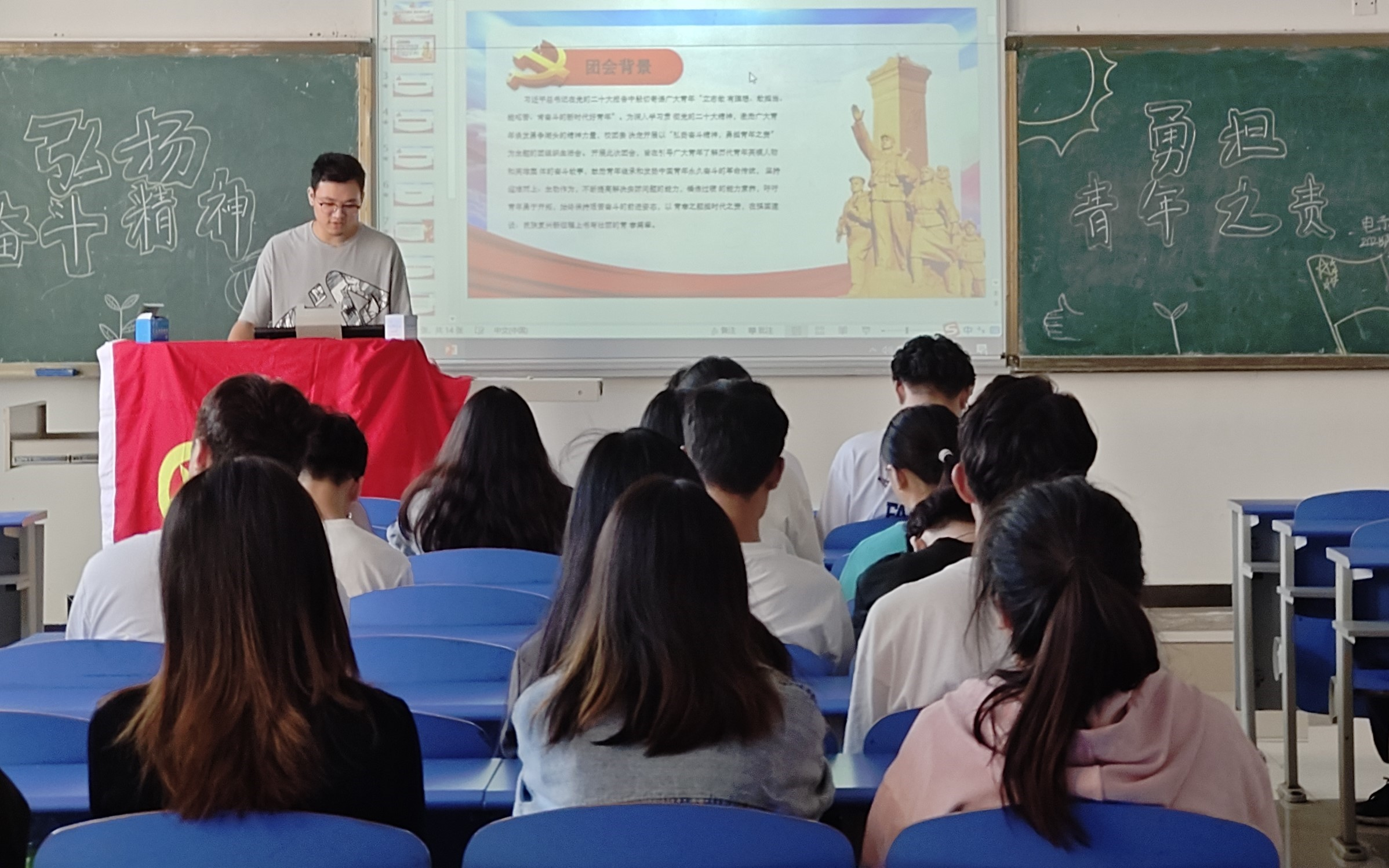 会议第一项:各班点名并齐唱团歌。而后,各班主持人从奋斗精神、青年责任两个方面提出相关问题。随后,同学们积极讨论踊跃发言:“我们该传承和弘扬红色文化,激发奋斗热情。我们也要有敢于担当的责任意识,在各自的岗位上勇挑重担,遇事不避难、不逃责、敢想敢干,不断开拓进取、勇于创新,努力实现自我突破和自我超越,让青春在创新创造中闪光。”此外,团委书记罗月以篮球女孩事例教导同学们应奋斗拼搏,担当起属于我们青年的责任。