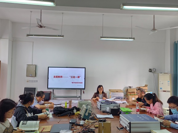 2023年5月26日,电子信息系党支部同志们在格致楼2512集中学习和自学相结合学习了“主题教育------“三会一课”为主题的党课活动。