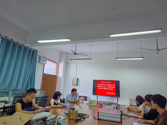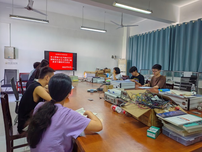 电子信息系党支部2023年9月专题组织生活会简报电子信息系党支部2023年9月专题组织生活会简报 电子信息系党支部在2023年9月15日(星期五)在格致楼2512开展了党员组织生活会会议。 按照学校党委“学习贯彻习近平新时代中国特色社会主义思想”为主题,聚焦“学思想、强党性、重实践、建新功”总要求,对照凝心铸魂筑牢根本、锤炼品格强化忠诚、实干担当促进发展、践行宗旨为民造福、廉洁奉公树立新风具体目标,深入学习领悟“以学铸魂、以学增智、以学正风、以学促干”的精神,进一步做到统一思想、统一意志、统一行动,坚定拥护“两个确立”,坚决做到“两个维护”。