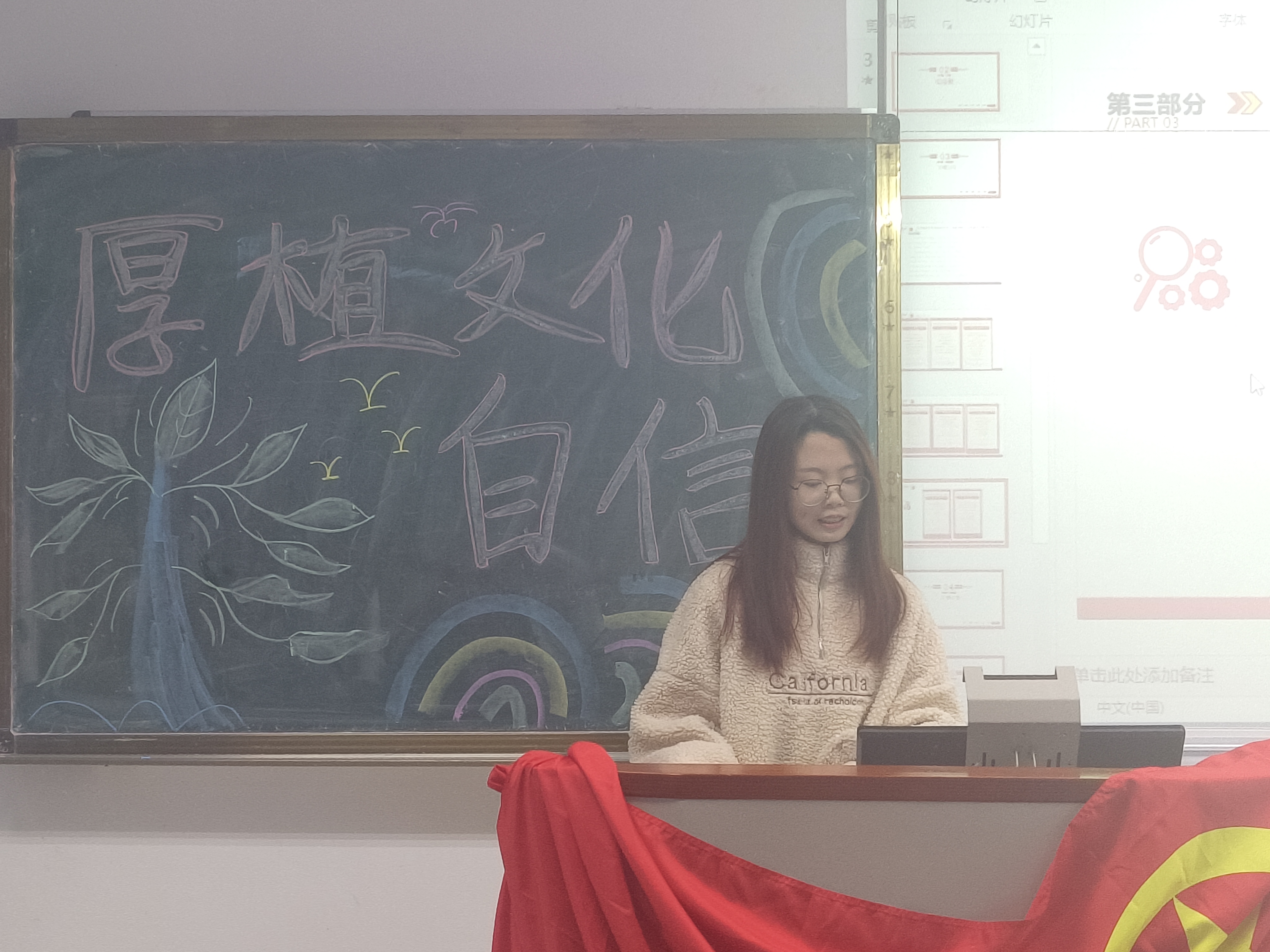 会议第一项:点名并唱团歌。 会议第二项,主题讨论。各班就“厚植文化自信,青年庚续传承”这一主题展开主题讨论。要让青年更好地传承中华优秀传统文化、发扬革命文化和社会主义先进文化,必须加强宣传和教育力度。要通过多种形式的宣传和教育活动,让青年更加深入地了解中华优秀传统文化、革命文化和社会主义先进文化的内涵和价值,激发他们的文化自信和文化认同感。