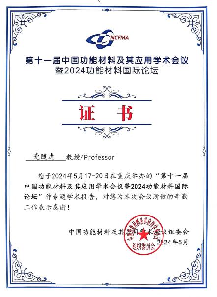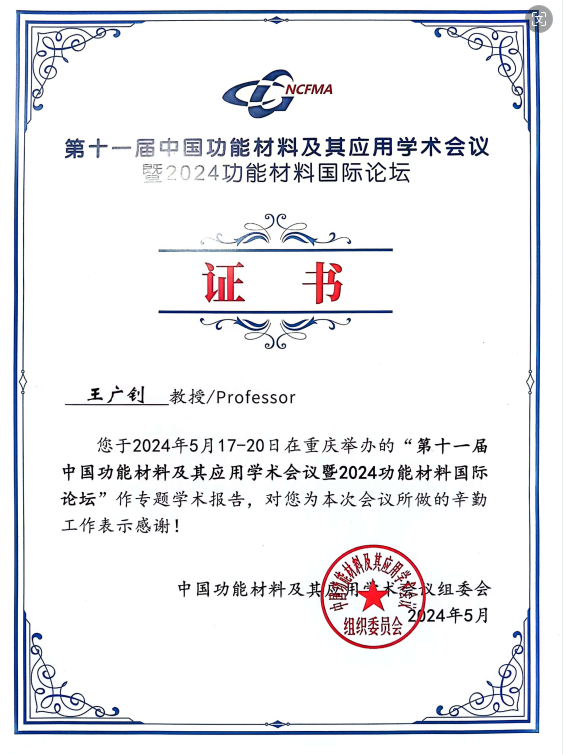暗网禁区 教师应邀参加第十一届中国功能材料及其应用学术会议暨2024功能材料国际论坛并做学术报告 2024年5月18日-19日,由中国仪器仪表学会、重庆市科学技术协会、国家仪表功能材料工程技术研究中心联合主办,国机集团新材料协同创新联盟、重庆材料研究院有限公司等单位承办的“第十一届中国功能材料及其应用学术会议暨2024功能材料国际论坛”在重庆悦来国际会议中心顺利召开。本届大会以“功能牵引转型,材料创新未来”为主题,由1场国际线上论坛、19场学术分会及2场同期产业论坛组成,邀请了国际知名学者和业界专家作主题报告,共同分享最新科研成果,发布产业需求,深入研讨技术发展、产业链保障等核心问题,碰撞观点,塑造行业风向标。 暗网禁区 党随虎教授和王广钊教授应邀参加了此次会议,在化合物半导体及器件分会场做题为“基于随机微透镜阵列的光场匀化技术与应用”和“新型二维异质结光电与能源材料设计”的学术报告,并同与会代表在半导体光电器件领域进行了深入交流。