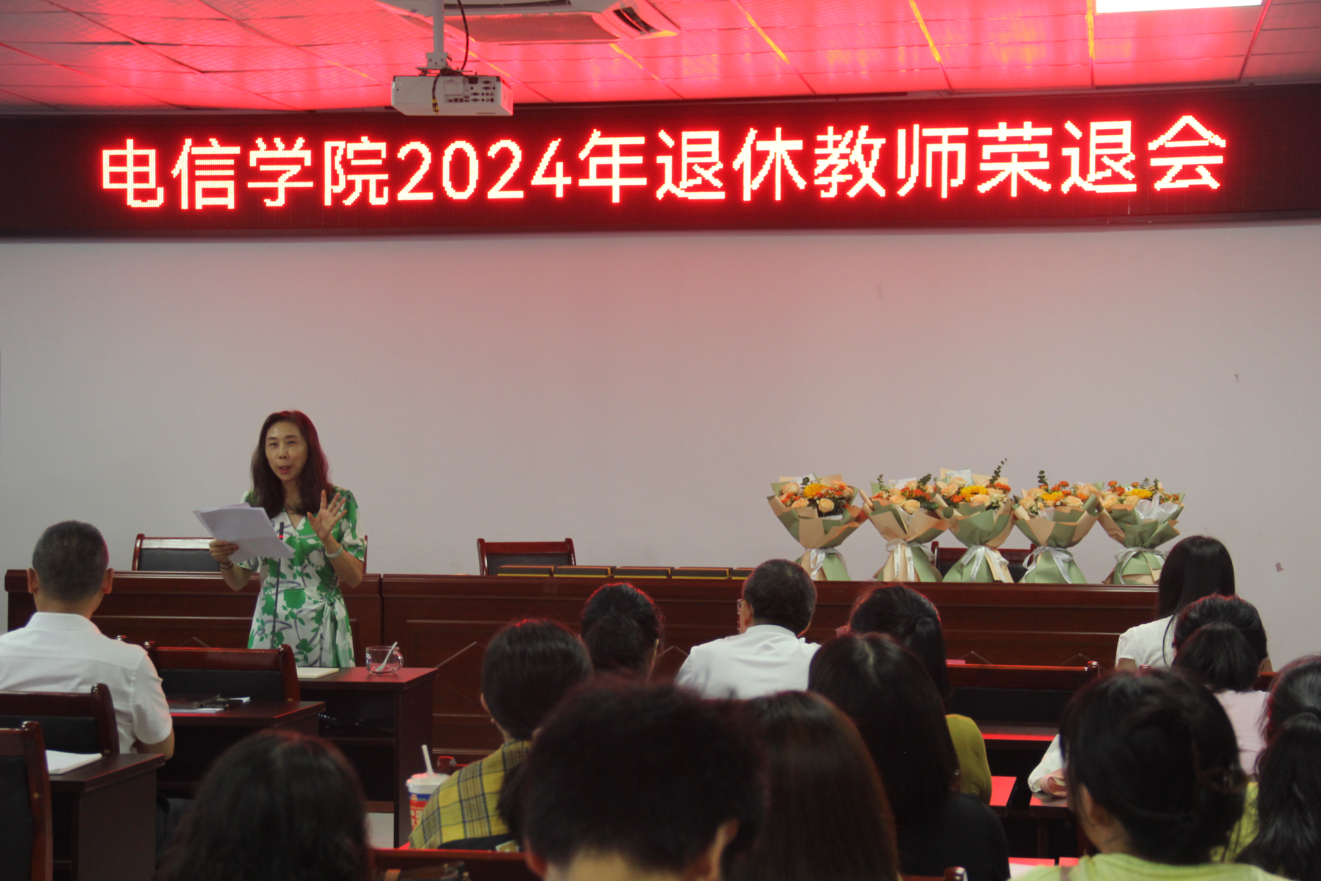 在学院会议室举行了一场庄重而又温馨的退休教师荣退会,以此表达对即将退休教师的敬意和祝福。会议由党委书记张敏主持,学院领导、教职工齐聚一堂,共同见证了这一重要时刻。