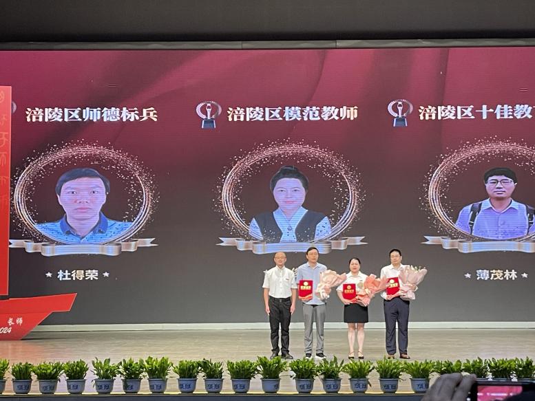 杜得荣老师以其高尚的师德和敬业的教学态度,荣获涪陵区“师德标兵”称号。这一荣誉是对杜老师在教育教学工作中做出杰出贡献的高度认可。