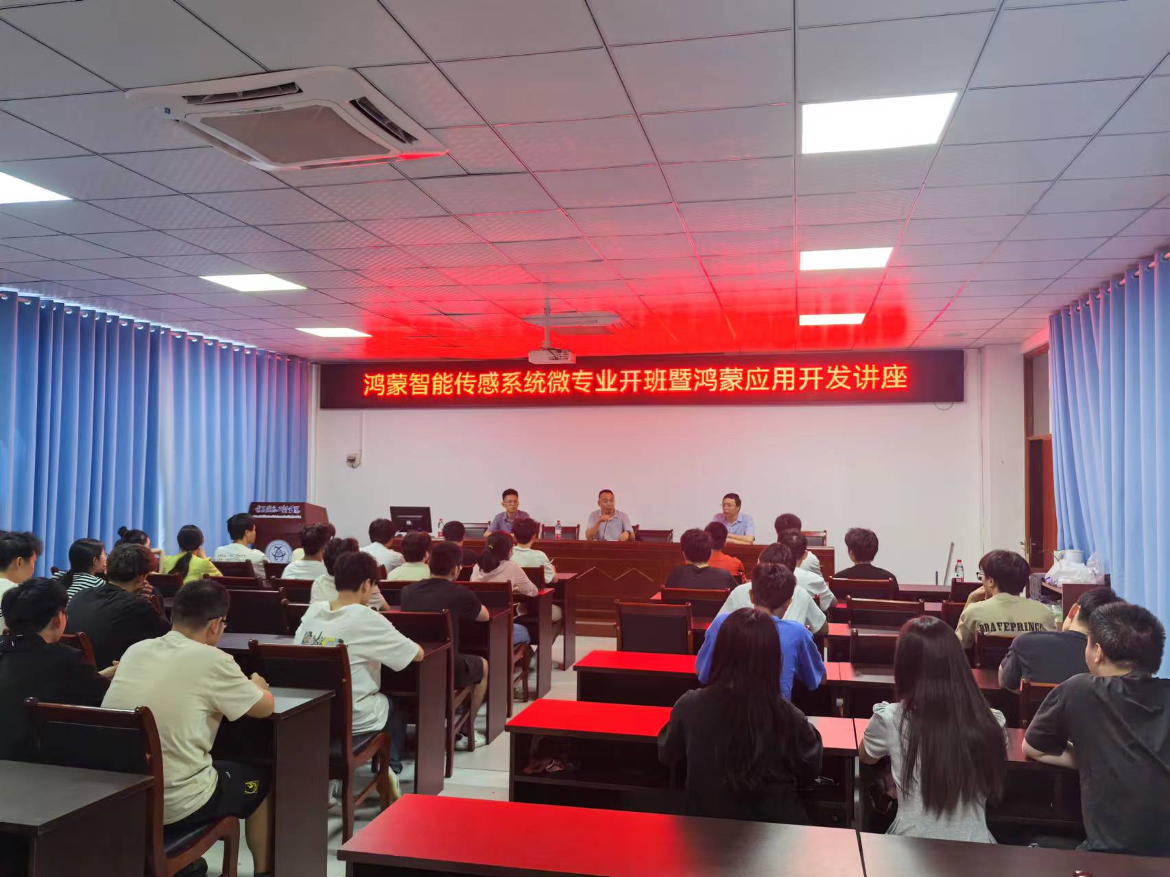首先,党院长主持召开了微专业开班会议,对学院围绕微专业课程、平台、师资等方面所做工作做了介绍,强调了行课纪律,并鼓励同学们努力学习,锤炼技术,为鸿蒙生态建设和我国科技自主做出贡献。本次会议标志着“鸿蒙智能传感系统”微专业由申报、立项、建设与招生阶段进入到实施运行新阶段,为暗网禁区