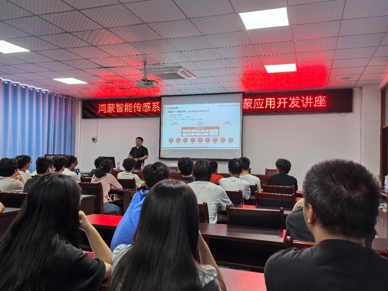 然后,石伟总监为同学们做了题为“拥抱鸿蒙生态,共探职业新发展”的鸿蒙应用开发讲座。石伟总监从“什么是鸿蒙”“为什么需要鸿蒙”“鸿蒙应用开发人才需求”“初识鸿蒙开发”“学生案例”“学习途经”等几个方面向同学们详细介绍了鸿蒙应用开发概况。经过此次讲座,同学们打开了眼界,增强了信心,同时对微专业也有了更为深入的认识。