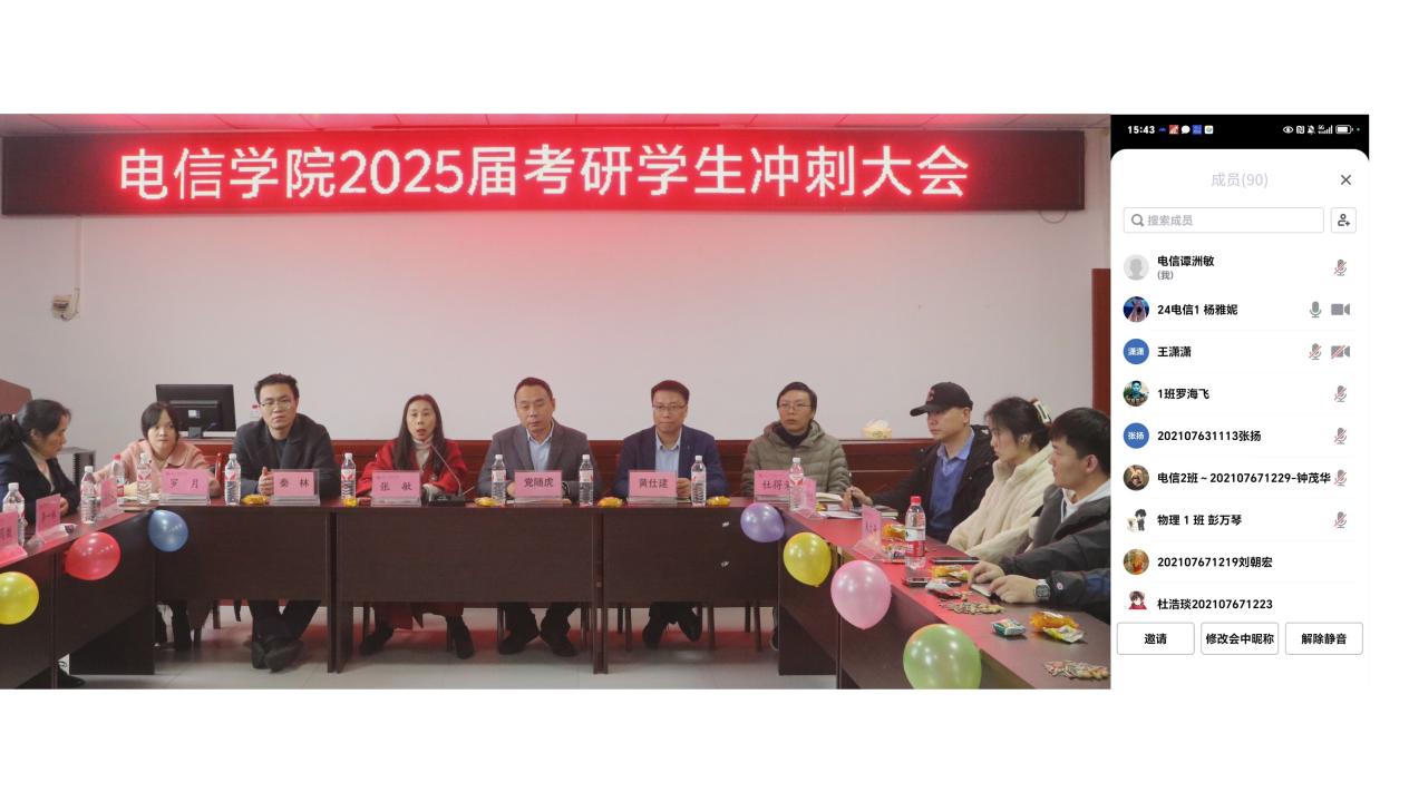 会议伊始,传东东、杨林等2021级考研同学结合自身复习经历,分享了在备考中的时间管理、学习方法、心态调整等方面的宝贵经验,为考研学生提供了更具实战意义的备考建议,同时还表达了对学院和老师的感激之情,并鼓励大家在最后的冲刺阶段保持良好状态,做到有始有终,坚持到底。随后,长春理工大学联培研究生分享了备考经验。他们指出要珍惜备考时间、科学备考,锲而不舍,树立考研信心和学习恒心,最重要的是及时沟通,保持良好心态。