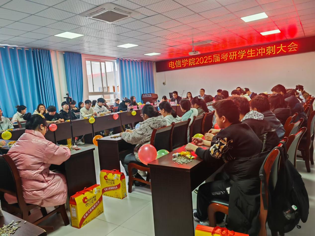 最后,张敏书记总结指出,考研之路充满荆棘,同学们要学会披荆斩棘。她鼓励大家,一是要坚定目标,坚守执着。二是要合理规划,提高效率。三是要调整心态,劳逸结合。四是要心怀感恩,发奋图强。 她还表示,考研工作是推动学院学风建设的重要抓手和有效举措,学院将从多维度、多阶段为考研学生提供全方为指导和服务保障,并预祝考研学子们考研顺利、一战成硕。 活动现场还为考研学生发放了考研坚果加油包,此次考研冲刺大会,不仅为同学们的复习备考提供了切实有效的建议,更增强了考研学子的备考信心。前路漫漫亦灿灿,愿电信考研学子们在考研的征途中不断超越自我,成功圆梦,书写属于自己的辉煌! |