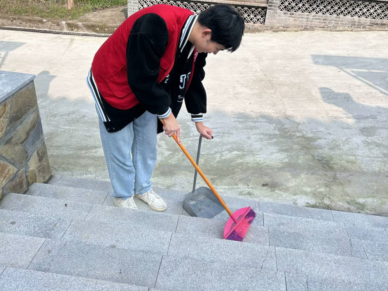 当天八点十五分,志愿者们在南大门集合并整理物资。到达目的地后在宏义社区的前院,志愿者们见到了热情的社区工作人员,工作人员为活动的顺利进行提供了支持与协助。他介绍了社区内的主要清洁区域,并一一列出需要重点清理的地方,同时递上了清洁所需的物资,进一步增强了志愿者们的信心和决心。经过简短而高效的准备后,志愿者们迅速分散到社区的各个角落。陈豪负责了步道,清理散落的烟蒂和纸屑;刘子琰则选择清扫社区公共设施,如长椅和健身器材,仔细地擦拭每一处可见的污渍。对于那些卫生死角,他们并没有掉以轻心,甚至动用工具对高处的尘埃进行了彻底的清理,确保每一个角落都能焕发新生。在清扫的过程中,志愿者们彼此交流着环保知识和经验,讨论着如何更好地保护环境,呼吁周围的居民积极参与到环保活动中来,一同维护社区的整洁。志愿者们期望通过此类活动,可以提升社区的清洁度,更关键的是点燃居民对环保的热情,让每位居民都成为环境保护的积极行动者和倡导者。经过数小时的辛勤劳动,社区环境焕然一新。社区工作人员们对志愿者们的付出表示了由衷的感谢和赞扬,看到这么多人为了我们共同的家园而努力,内心感到非常温暖。