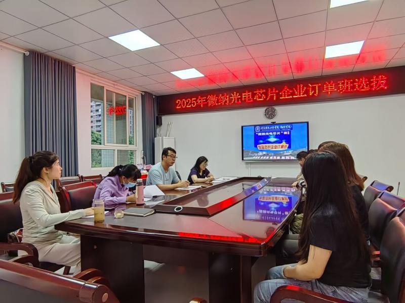 校企共话:“产教融合”新未来 5月22日17:00,微纳光电芯片伽蓝迈时企业订单班开班仪式在格物楼1210举行,学院党委副书记肖恒主持。 郭红力副院长首先汇报了订单班筹备情况,从课程设计到企业对接,详细阐述了“理论夯实+实践淬炼”的培养逻辑。随后,系主任夏锴宣读首批企业订单班学生名单及团支部委员名单,24名学生佩戴校徽、正装出席,目光中满是期待。