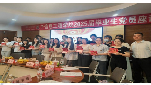 随后,党委书记谢正发以《中国经济中长期增长与民族复兴伟业》为题,为全体毕业生党员带来一堂深刻而振奋的专题党课。谢书记深入分析了我国经济发展态势,指出,在党的坚强领导下,中国经济长期向好的基本面没有改变。作为电子信息领域的青年党员,你们既是民族复兴的见证者,更应该是参与者和推动者。 座谈会上,罗月老师详细讲解了毕业生党员离校相关事宜。在师生交流环节,毕业生党员依次发言,深情回顾了在校期间的学习生活点滴,分享了在专业学习、实践锻炼、校园文化活动中的收获与成长,表达了对学院多年悉心培养的感恩之情。同时,同学们也对学院人才培养、教育教学、管理服务、基础设施改善等方面积极建言献策,表达了对母校未来发展的期待。