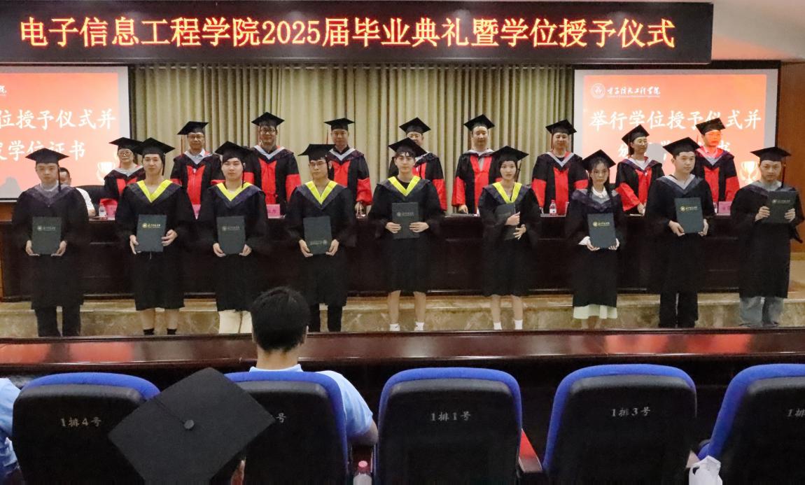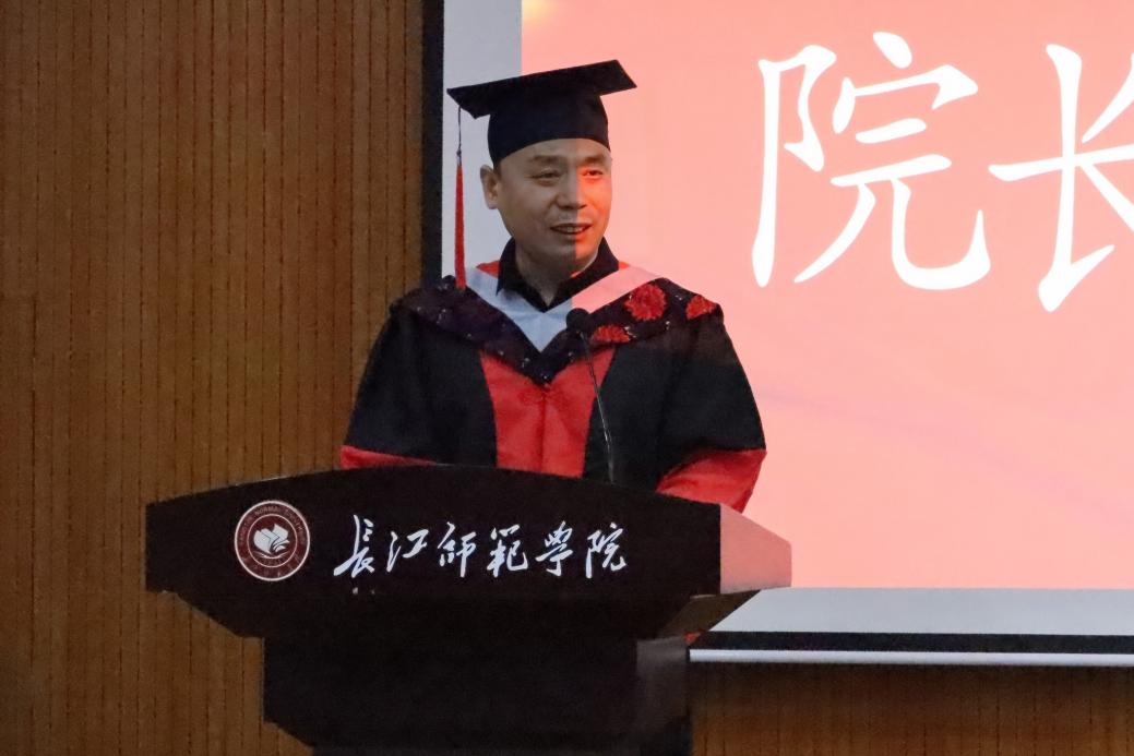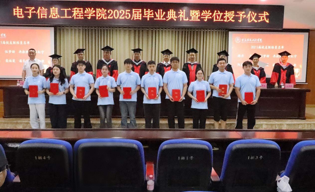 随后举行的校友联络员聘任仪式上,党委书记谢正发宣读了《关于2025届毕业校友联络员聘任决定》,学院领导为新任校友联络员颁发了聘书。并勉励联络员们肩负联系母校与校友的重要使命,为学院发展贡献力量。 毕业生代表张靖悦同学在发言中深情回顾了大学四年的成长历程,表达了对母校和师长的感恩之情。教师代表杜得荣博士以“职场、学业、生活”为关键词,用诗意语言“格桑花永远为你们盛开”寄语毕业生永葆赤子之心。 院长党随虎在致辞中向毕业生提出六点殷切期望,坚守专业初心、保持终身学习、强化职业伦理、注重实践创新、培养抗压韧性、常怀感恩之心。他强调,在智能化时代浪潮中,电信学子要勇担科技报国使命,用专业能力服务社会发展。