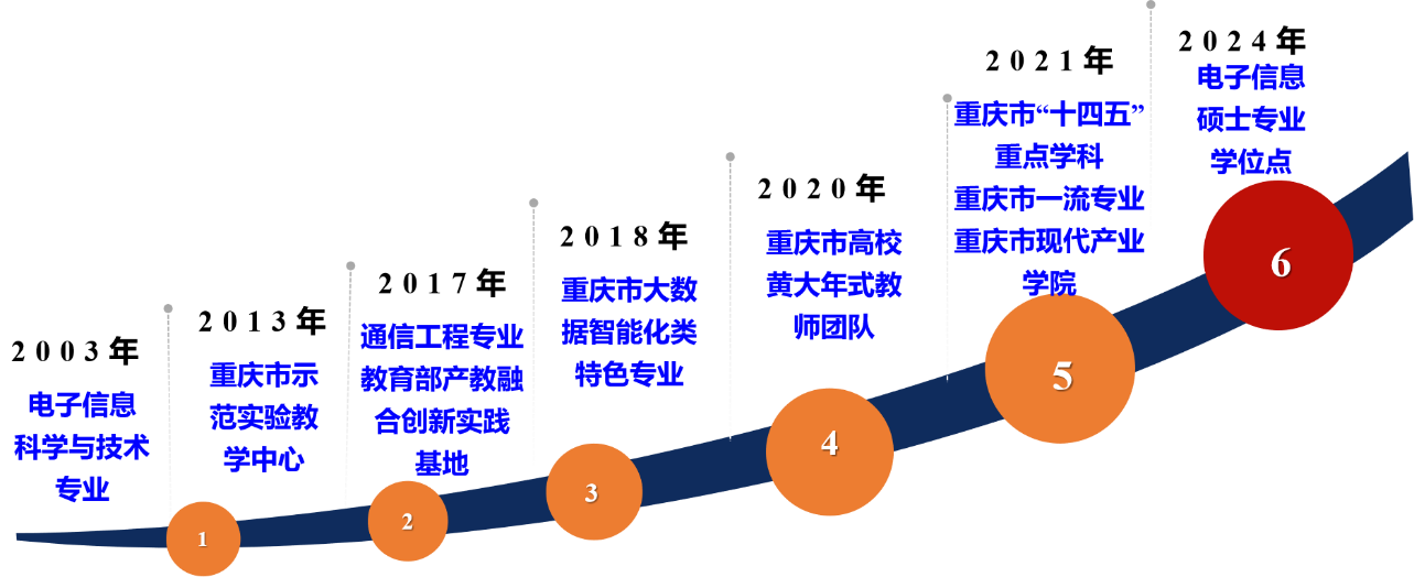 学科平台 电子信息为重庆市高校“十四五”重点学科。建有重庆市工程技术研究中心、重庆市协同创新中心等省部级平台4个。投资3000万元建成西南地区高校首台具备8nm特征尺寸大面积电子束加工能力的微纳光电器件与智能感知系统重点实验室。电子信息实验室总面积16000平米,仪器设备总值6000余万元。