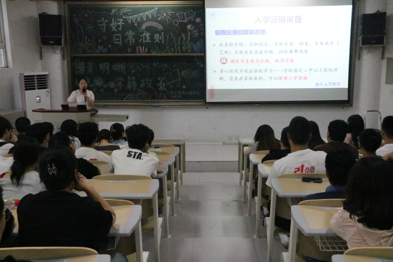 入学教育伊始,李阳莉老师以生活规范立根基为核心,围绕新生在校生活的“安全与秩序”展开细致讲解,帮助新生快速融入校园生活。她首先聚焦住宿管理规定,明确要求新生严格遵守宿舍作息、卫生标准,严禁私自在外租房、违规使用大功率电器及饲养宠物,强调违规行为将依据学校学生管理规定严肃处理,引导新生树立集体生活需守规的意识;随后,她结合校园安全案例,对学生违纪处分管理规定进行逐条解读,从课堂考勤、考试纪律到校园公共秩序维护,清晰划分行为红线;同时,她还详细讲解了校园应急事件处理流程,包括突发疾病、安全隐患、矛盾纠纷等场景的应对方式与上报渠道,确保新生在遇到问题时能“找对人、办对事”,切实增强新生的校园生活安全感与适应力。