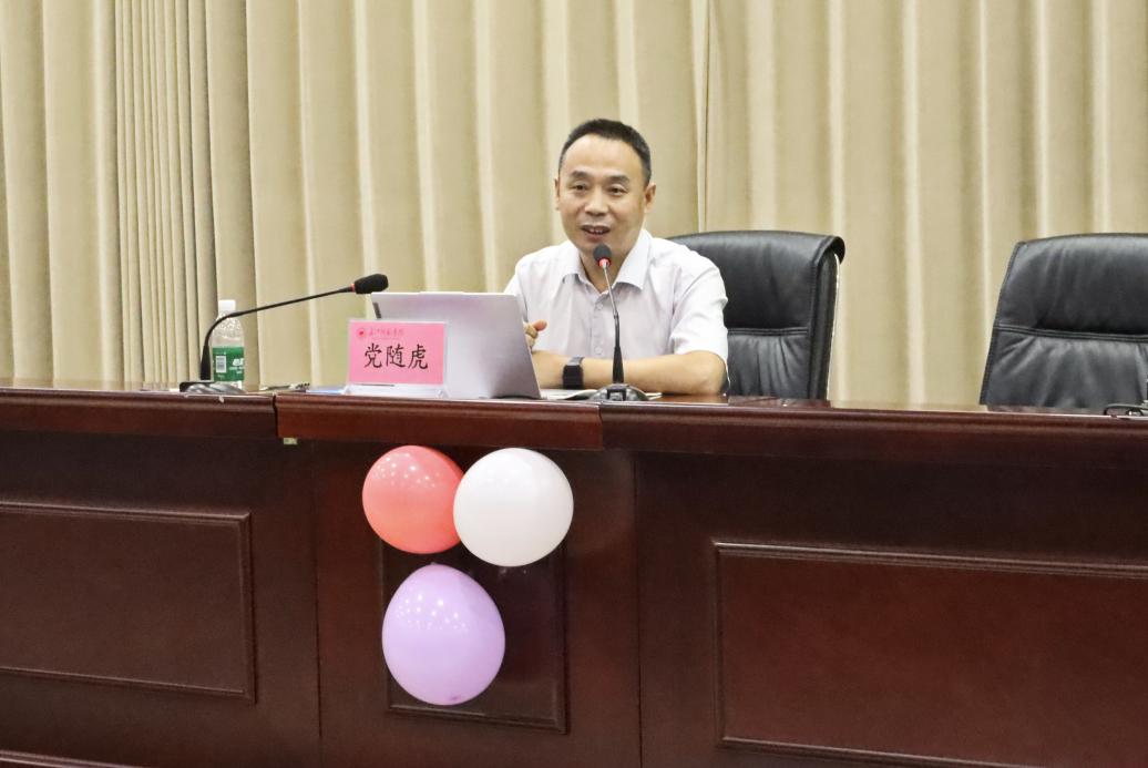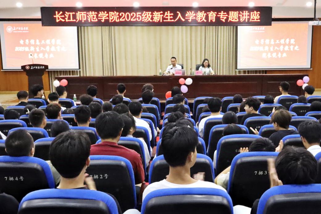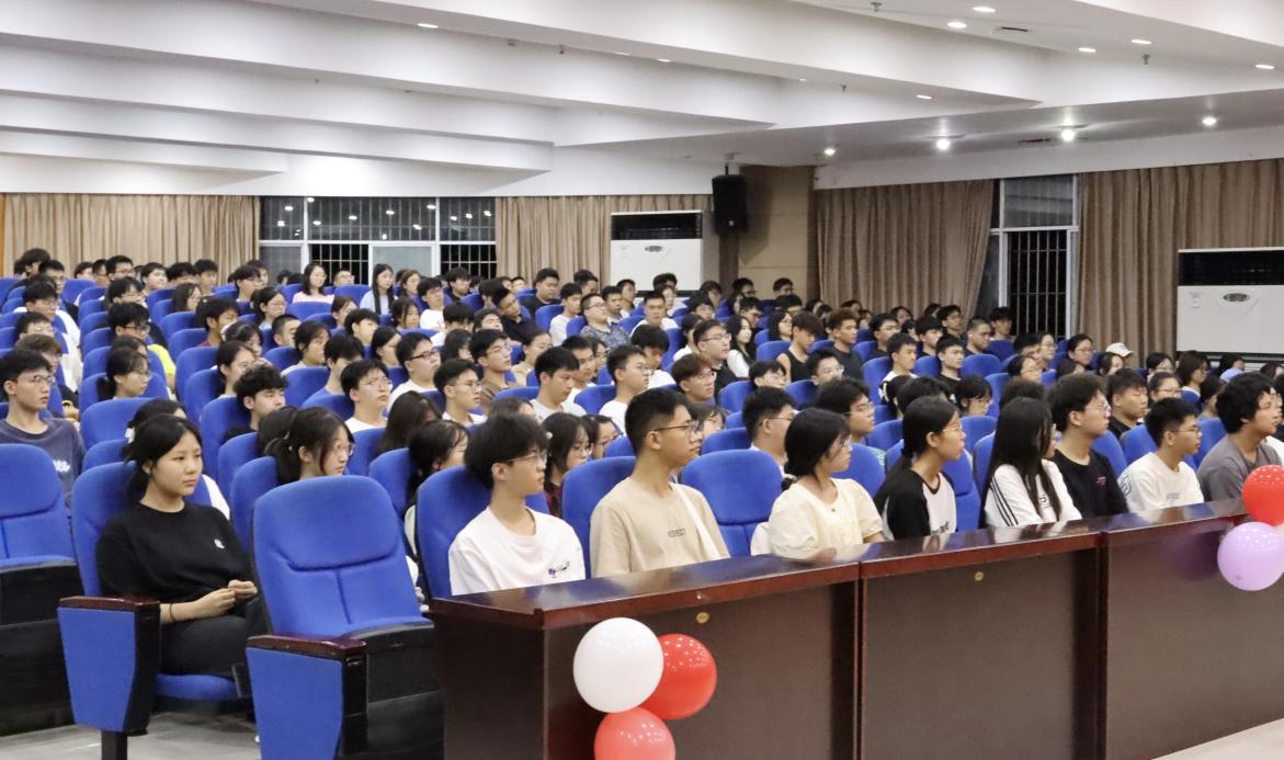 2025级新生入学教育专题讲座“院长说专业”在鉴湖学术报告厅举行。院长党随虎教授主讲,辅导员谭洲敏主持,2025级全体新生到场聆听。