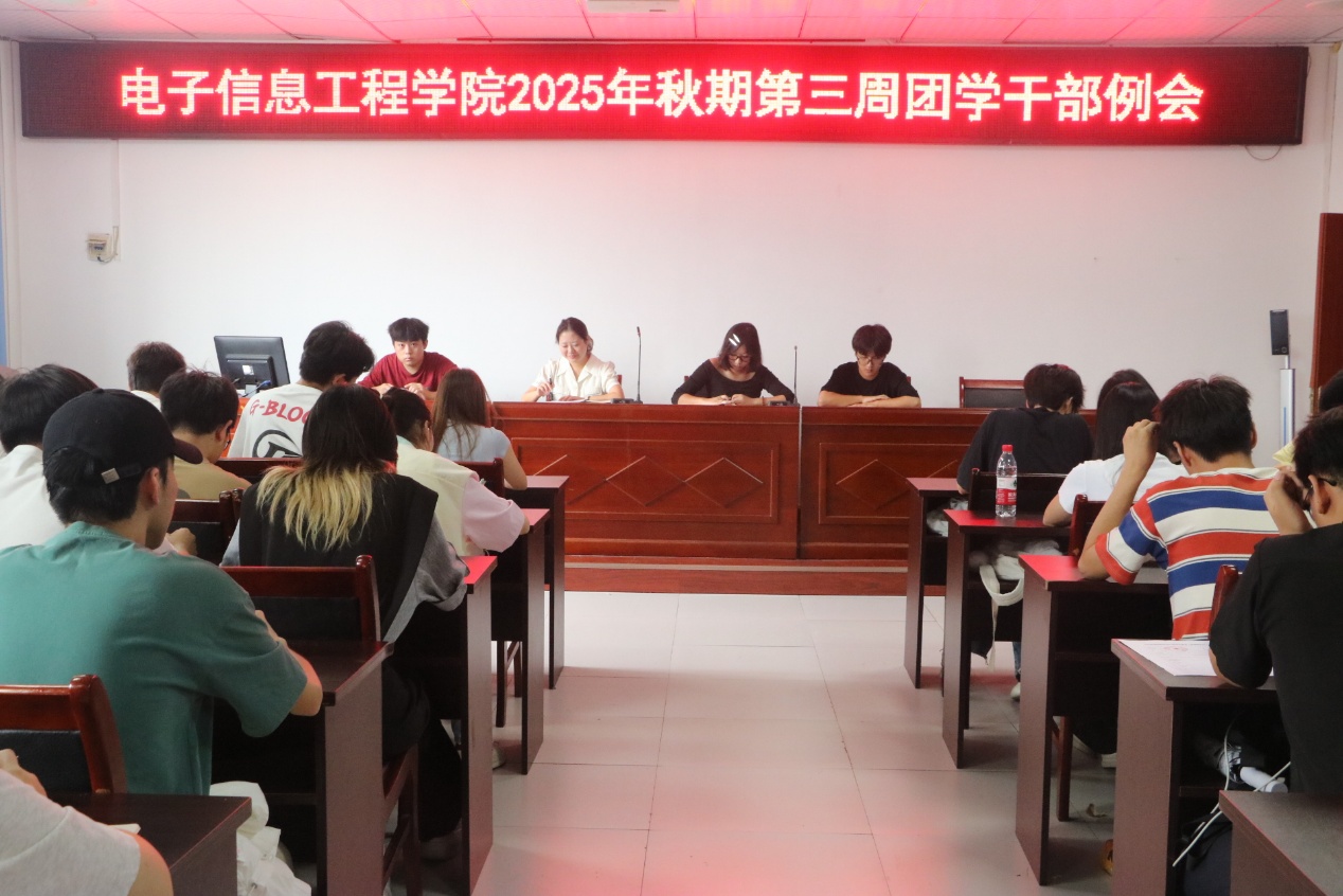 在格物楼1508召开第三周学生骨干例会,23级辅导员陈玲出席,23、24级全体学生骨干参与。