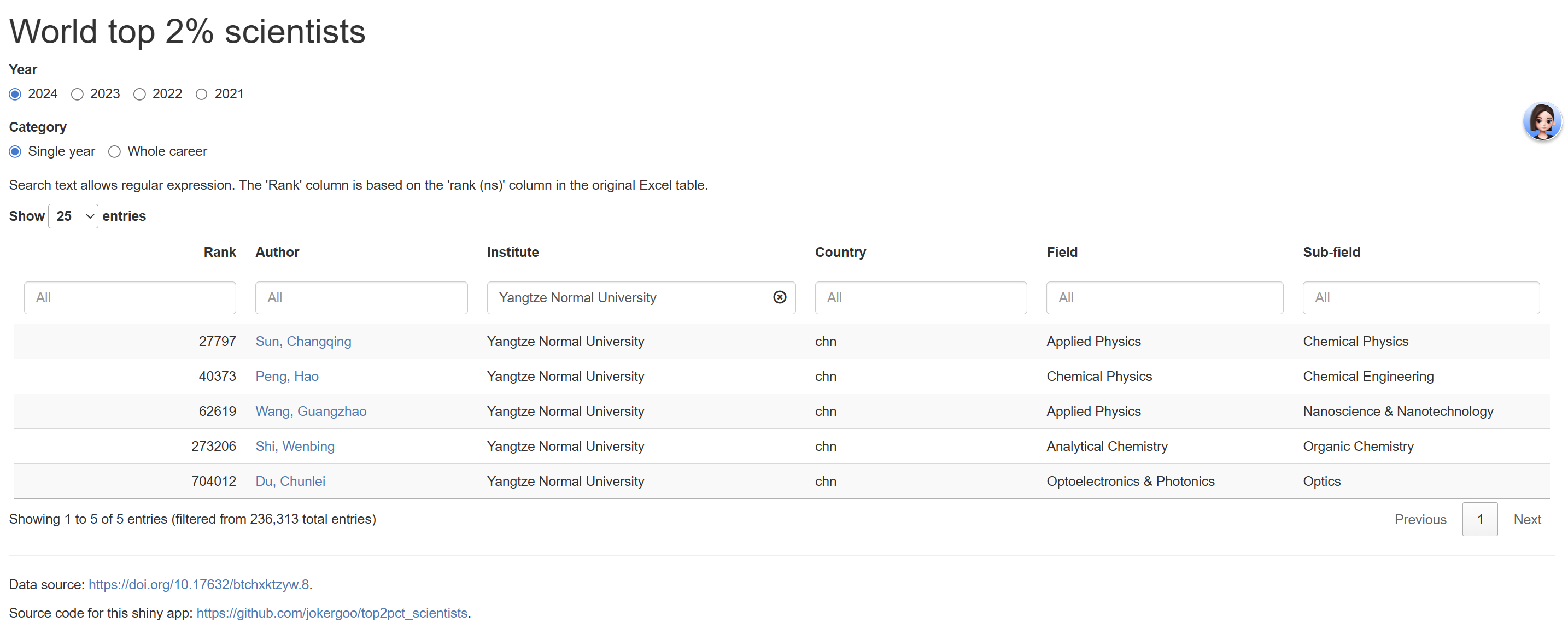 入选2025年版全球前2%顶尖科学家榜单名单及学科领域