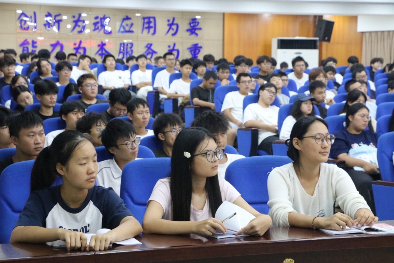 最后郭院长真诚提出四点希冀:结合人才培养方案规划学业、严守校规重视诚信考试、适应大学考核模式、兼顾学业与能力培养。