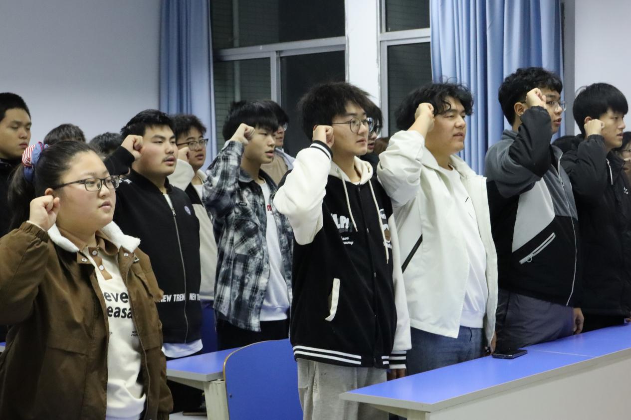 团会以全体同学齐唱激昂奋进的团歌拉开序幕。在随后的主题讨论环节中,同学们共同鉴赏了焦裕禄等廉洁典范人物的事迹,深入学习廉洁奉公的崇高精神。主持人抛出问题:“大学生如何践行廉洁?”这一议题迅速引发了同学们的热烈讨论和积极分享。为进一步深化对廉洁的认知与践行的决心,主持人引领同学们进行庄严宣誓,自愿加入廉洁行动,矢志为建设廉洁世界贡献力量。