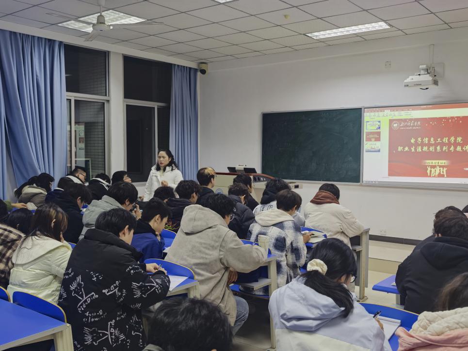 专题讲座在崇礼楼举行。2025 级辅导员谭洲敏主讲,25级全体物理学专业学生参与。