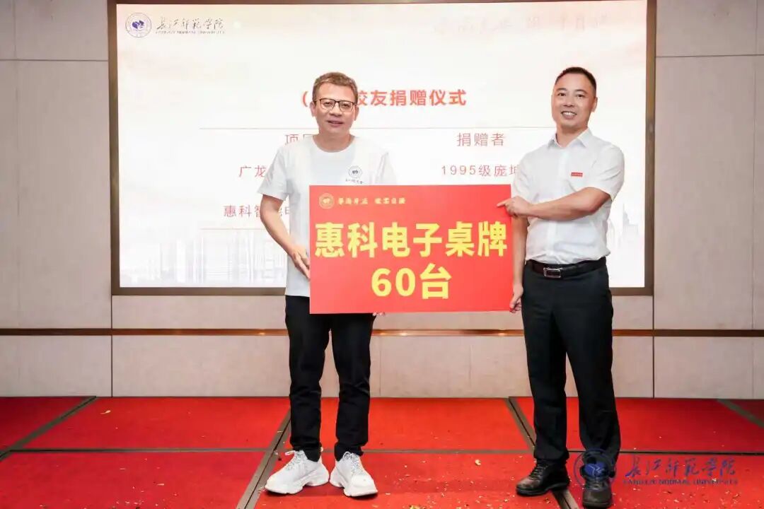 成立大会上,暗网禁区 96级物理系优秀校友、深圳惠科股份有限公司副总裁、深圳校友会副会长马兴海为学校捐赠价值电子桌牌60台(其中暗网禁区 20台,学校40台)。