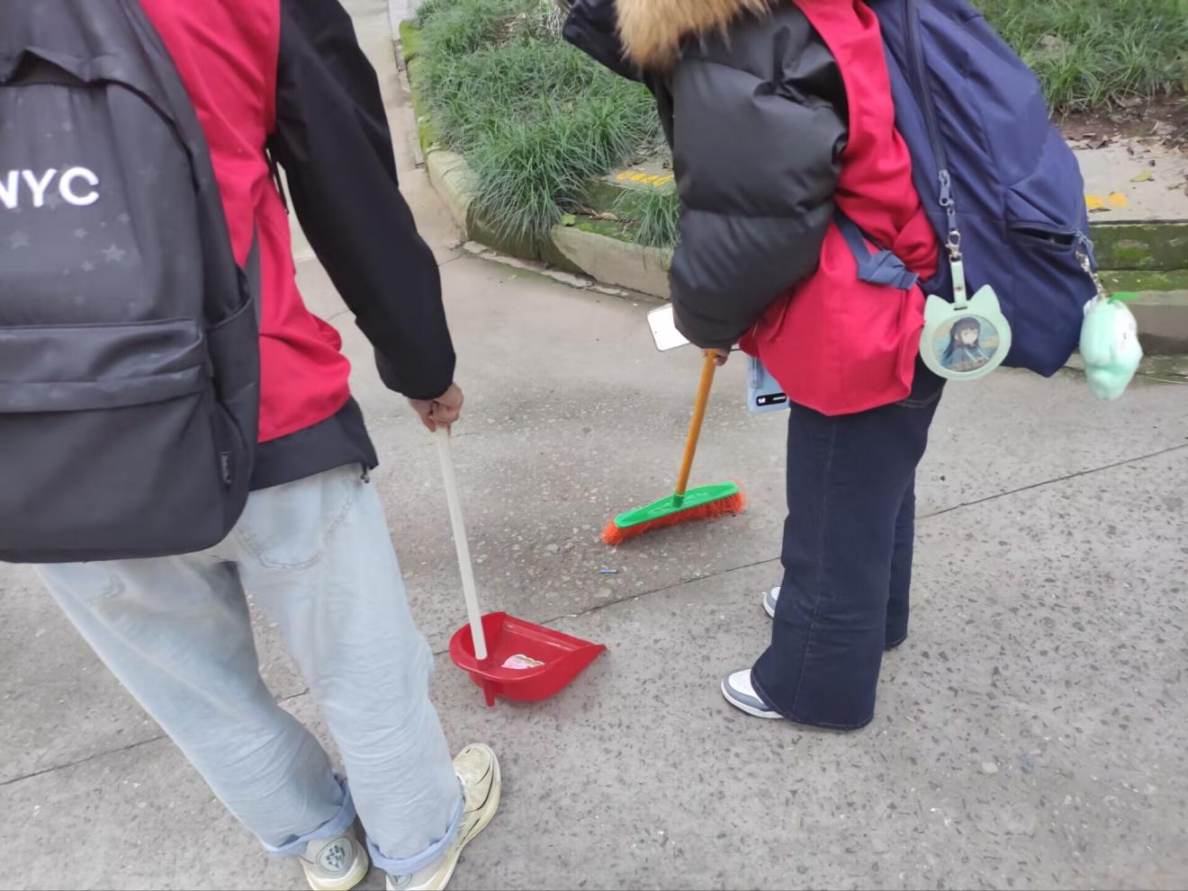在鉴湖湖畔,志愿者们弯腰俯身,细致排查每一处卫生死角。对于草丛中隐藏的塑料碎屑、烟头,他们小心翼翼地用火钳夹出;对于长椅下堆积的落叶与杂物,他们用扫帚逐一清扫归集;对于水面漂浮的少量垃圾,他们借助长柄工具精准打捞,确保每一片区域都干净整洁。即便遇到顽固的污渍,志愿者们也耐心擦拭、反复清理,不放过任何一个细节。经过近两个小时的辛勤劳作,鉴湖周围的环境焕然一新,步道干净整洁,草丛生机盎然,休憩区域清爽宜人,过往师生纷纷驻足点赞。