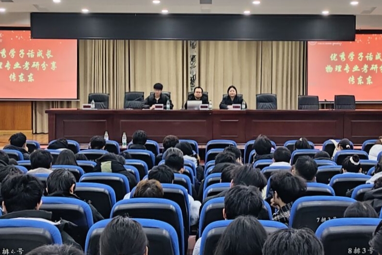 12月26日下午,一场旨在解答考研疑惑、指引未来方向的物理专业考研分享会在鉴湖报告厅热烈开展。优秀学子传东东受邀出席,与2023级至2025级的骨干学生共话成长。