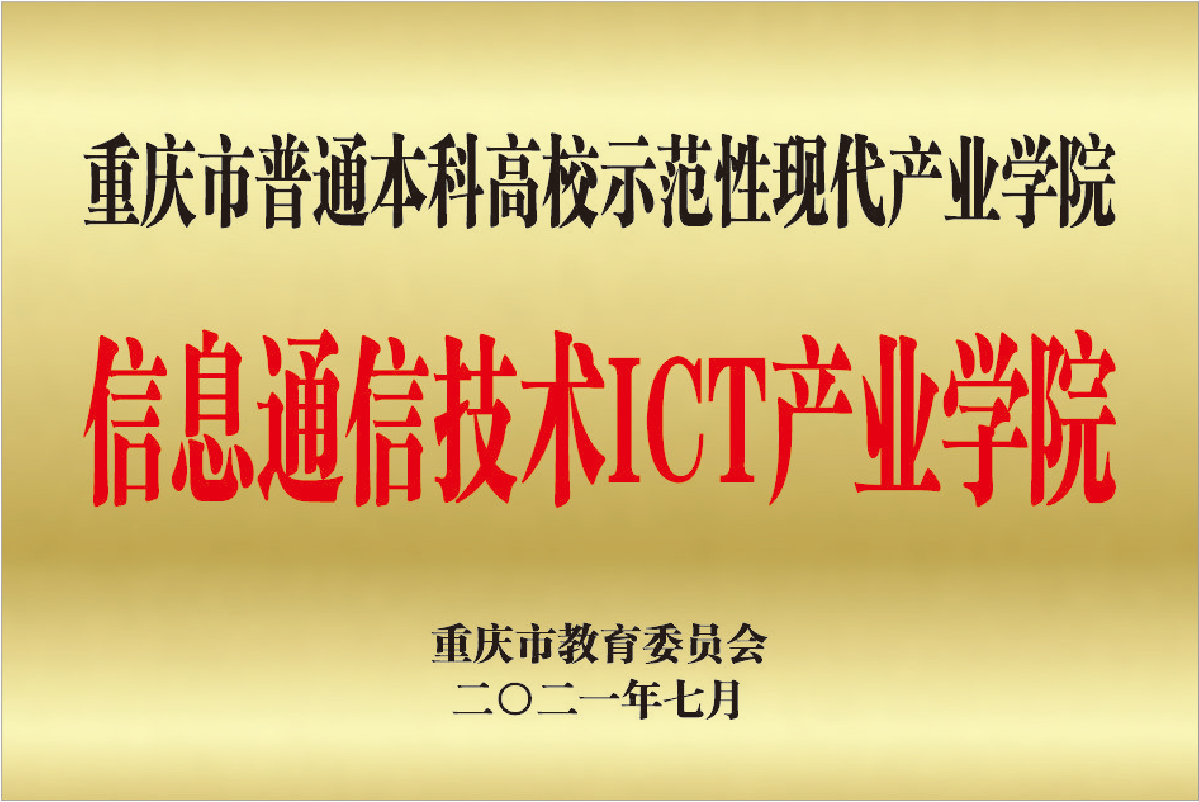 首批现代产业学院之一。2021年获批重庆市示范性现代产业学院,2024年顺利通过重庆市教委终期验收。 建设目标:以重庆市数字化产业和制造业数字化发展急需为牵引,充分发挥信息通信技术(ICT)行业头部企业和重庆制造业强势企业的产业优势,深化产教融合,探索产业链、创新链、教育链有效衔接,高等教育与产业集群联动发展的机制,增强ICT专业集群办学活力,打造区域内集人才培养、科学研究、技术创新、企业服务、学生创业等功能于一体的多主体共建共管共享的示范性人才培养实体。 组织架构:ICT产业学院实行理事会领导下的院长负责制。由校企双方代表组成的理事会,负责对产业学院办学中的重大问题进行审议、决策、检查、指导、咨询、监督和协调。理事会设立理事长一人、副理事长一人,理事若干人。聘任高校、政府、行业企业的知名人士担任名誉理事。理事会下设学术分委员会、教学分委员会两个委员会。每一届理事会任期四年。